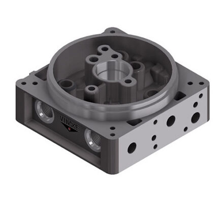 Bloque para minicentral de simple y doble efecto “5p” fabricado en alumio. Vincke ha mejorado y evolucionado sustancialmente el bloque de la minicentral, éste ofrece una mayor posibilidad de montaje al tener 5 cavidades, permite trabajar con un mayor paso de caudal y menor perdida de carga y una ofrece una regulación más precisa con la nueva válvula de máxima.